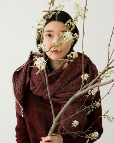 バイアス(斜め)方向で裁断し仕立てられたストール。