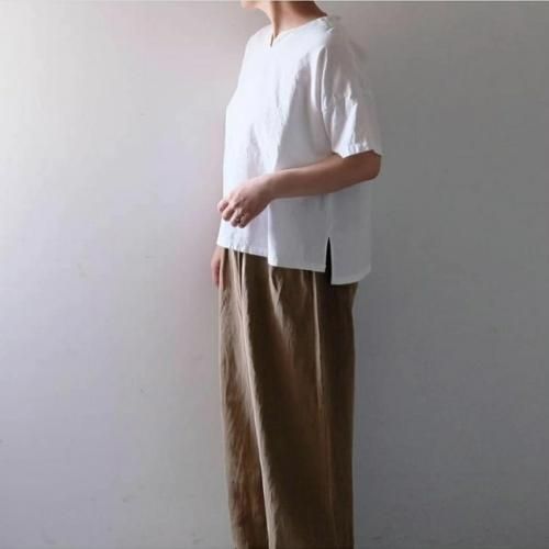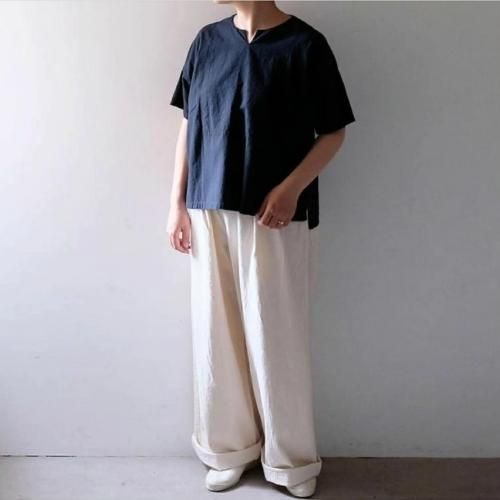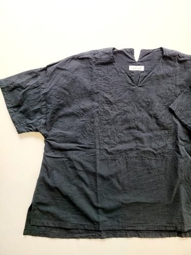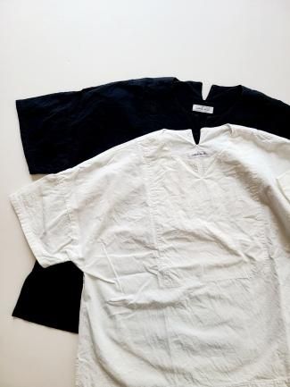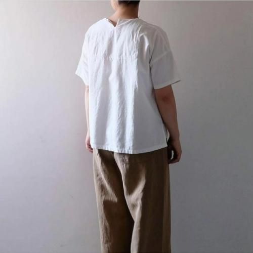 takeshi kandaの前後にカットを入ったキーネックシャツの半袖タイプ。